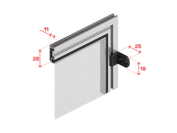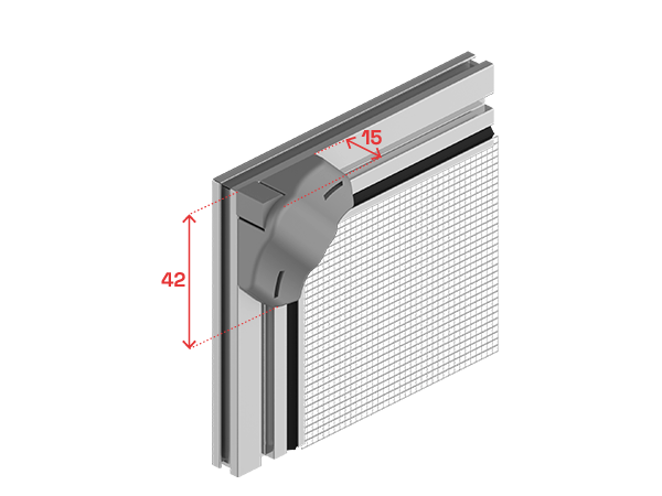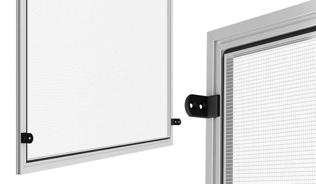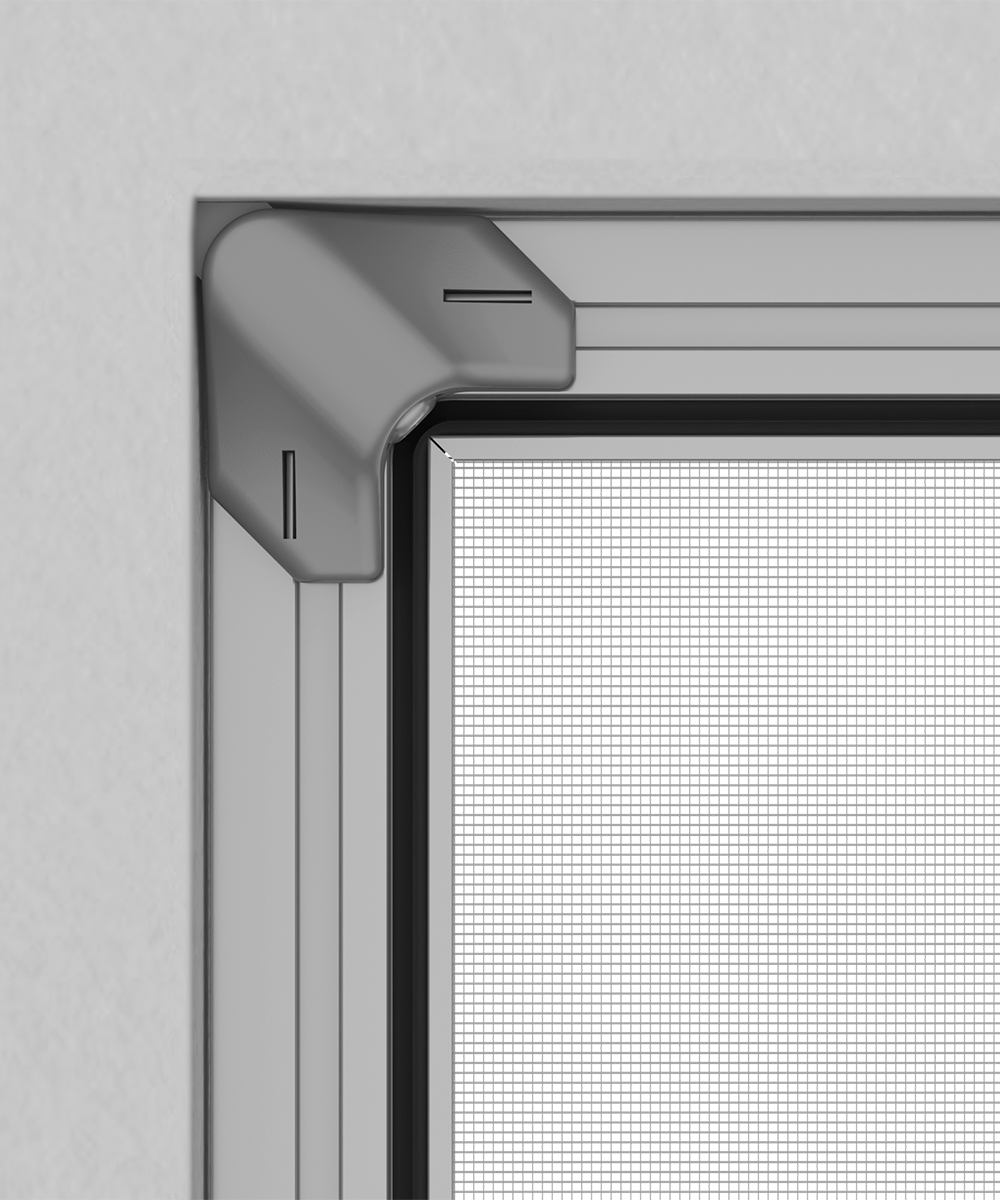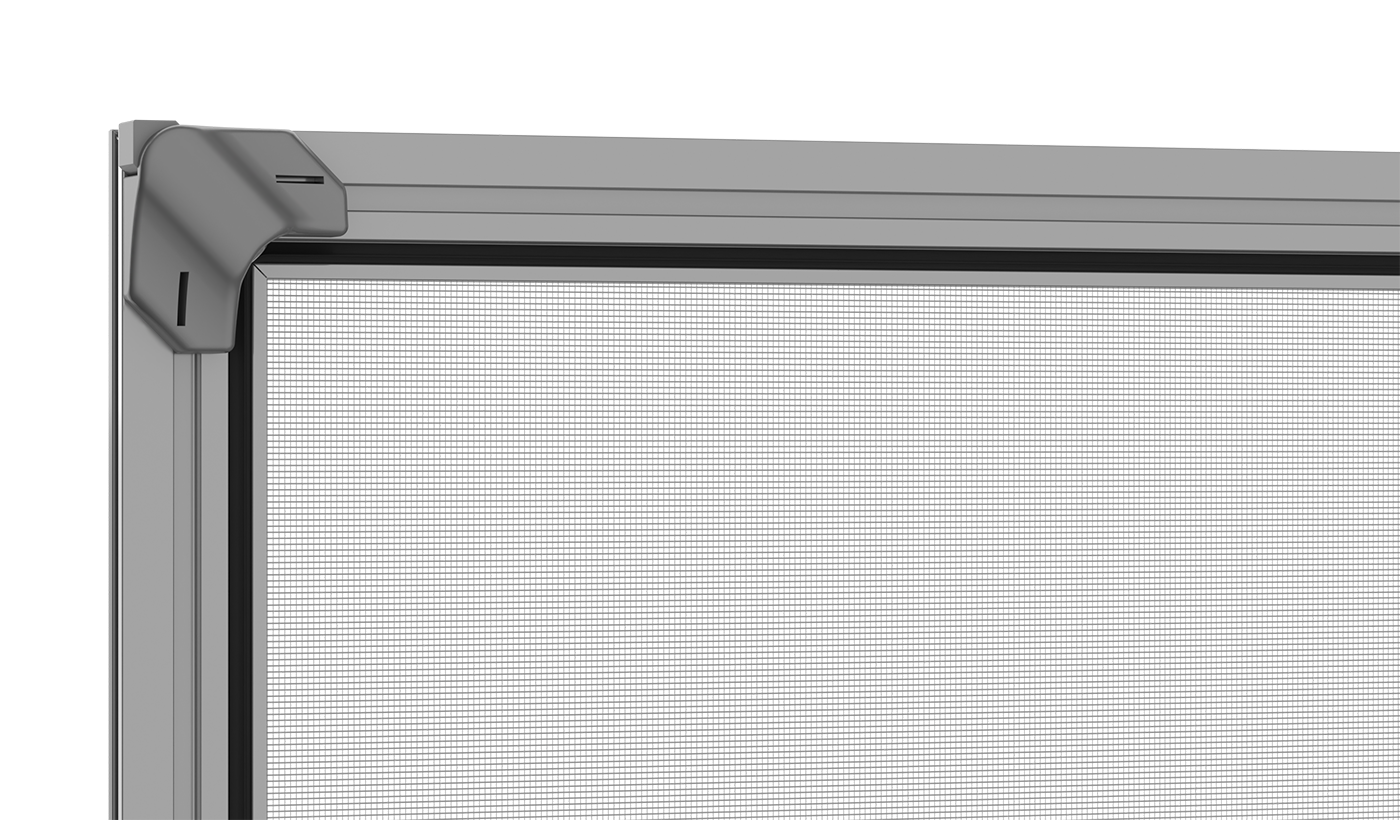 Il montaggio è semplice tramite le squadrette angolari in PVC che si incastrano facilmente nel telaio della zanzariera, consentendo un’installazione veloce con l’uso di viti