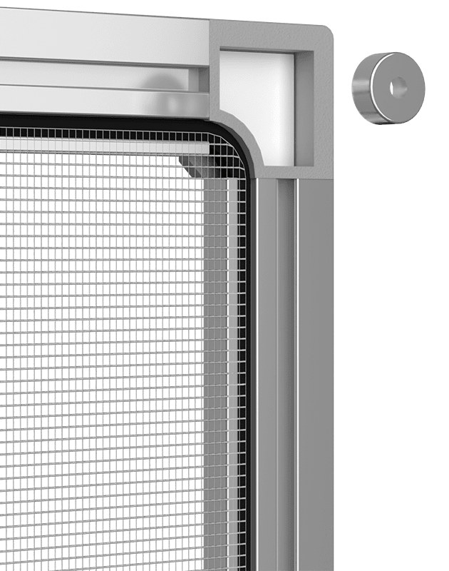 Con i pratici bottoncini magnetici, disponibili su richiesta, la zanzariera FISSA 90 si monta facilmente su piccole grate, garantendo una tenuta perfetta e una protezione ottimale