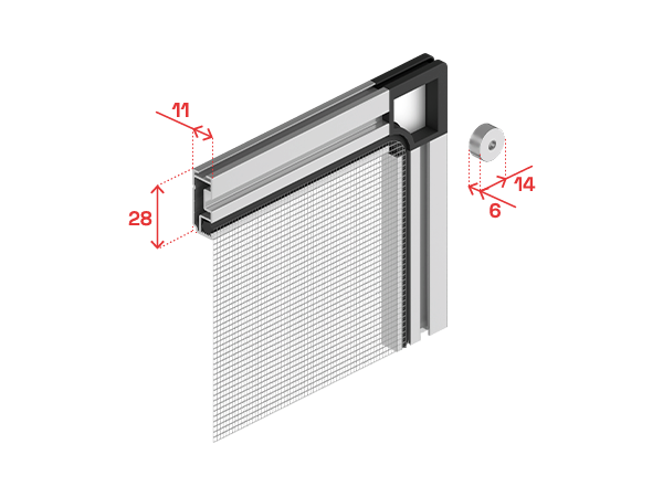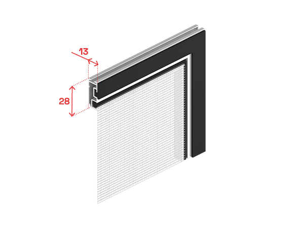 Per tutte le zanzariere con larghezza e/o altezza superiori a 1500 mm, viene installata di serie una traversa. Questa aggiunta conferisce maggiore robustezza alla struttura e garantisce una tensione ottimale della rete, mantenendola perfettamente in posizione anche su dimensioni ampie