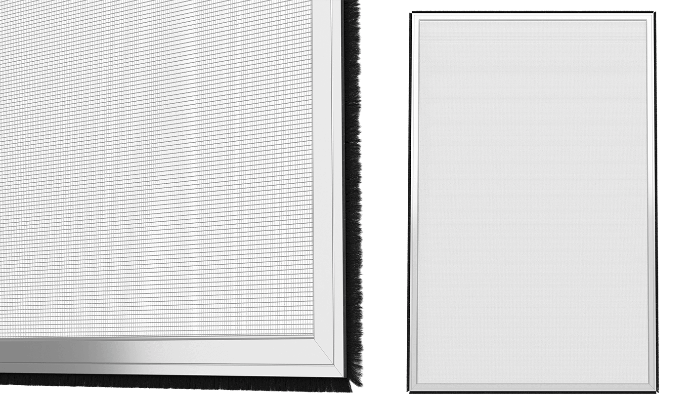 Su richiesta è possibile ordinare questa zanzariera con spazzolino perimetrale che favorisce il montaggio su vani non perfettamente a squadro, lo spazzolino riesce a compensare 7 mm per lato